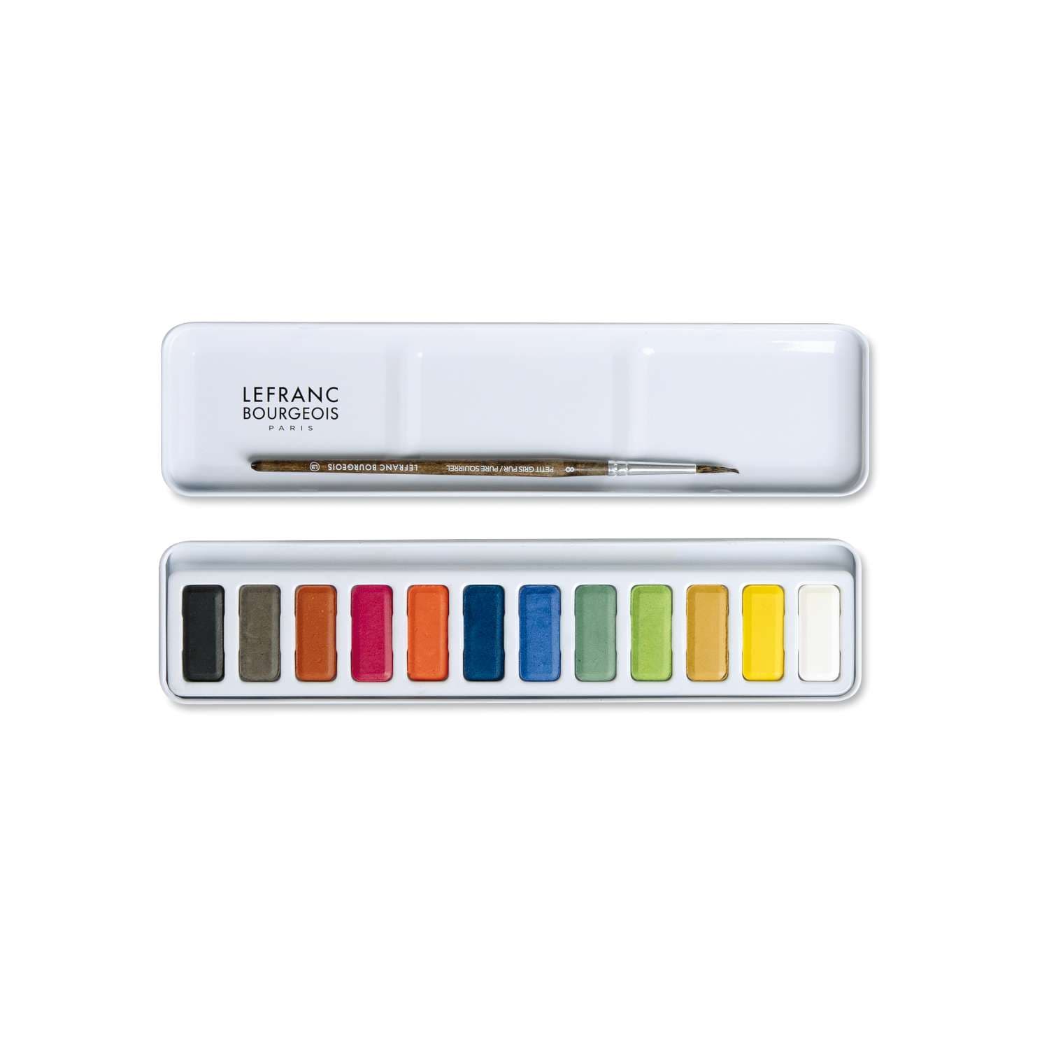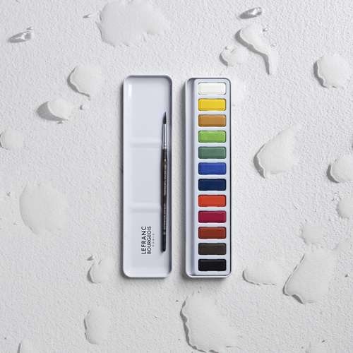 El cofre de acuarelas Lefranc & Bourgeois contiene 12 colores de calidad para aprendizaje y un pincel de acuarela de tamaño 8, todo ello entregado en una robusta caja metálica vintage. Perfecto para iniciarse en la pintura con acuarela.