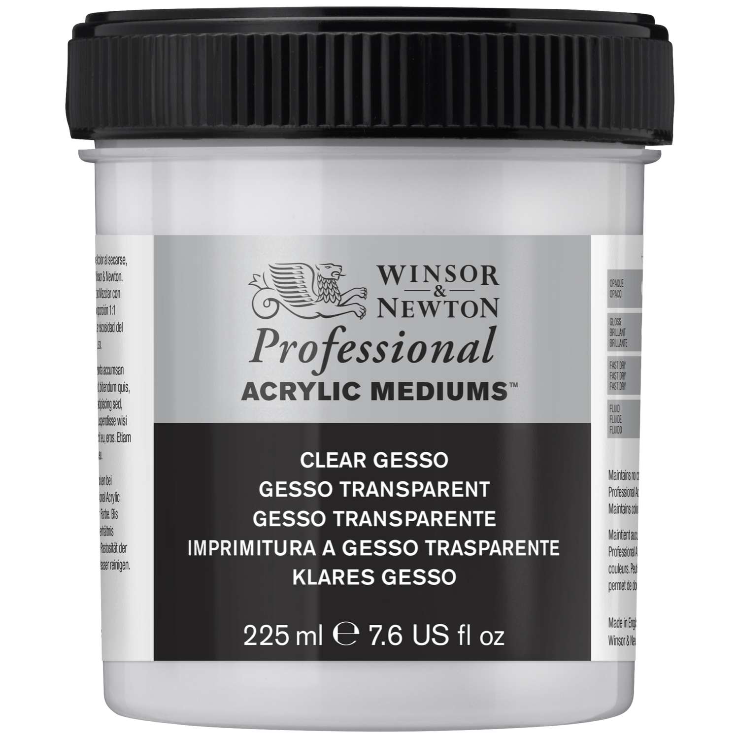 Este gesso Profesional Acrylic de Winsor & Newton, a base de resina transparente, presenta una rugosidad excelente sin pigmentos y es completamente transparente al secar, conservando así el aspecto original del fondo. Si desea empezar su trabajo por un fondo de color, puede crear su porpio apresto de gesso a color agregándole colores acrílicos.