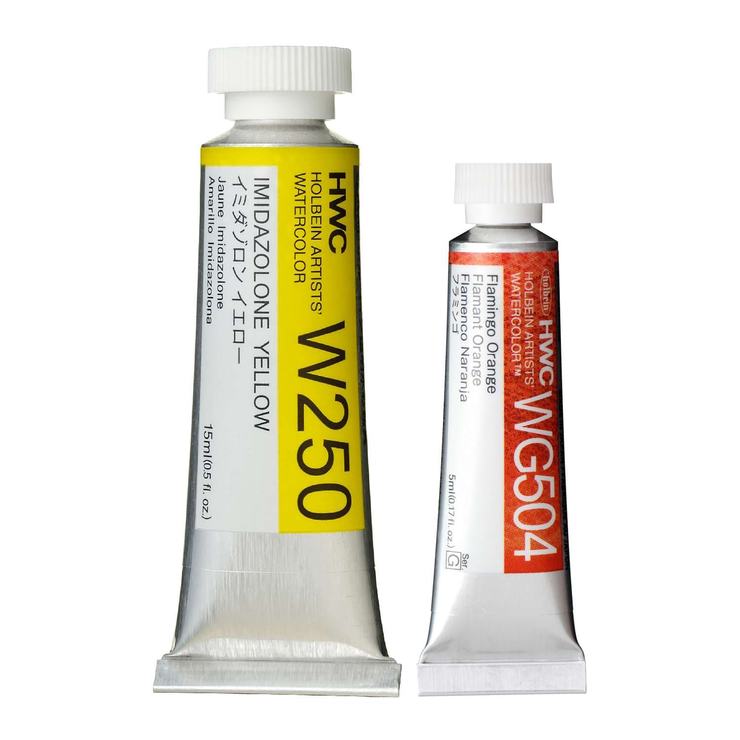 Acuarelas extrafinas Holbein, con alta concentración de pigmentos, textura cremosa y transparencia excepcional. Disponibles en tubos de 5 ml y 15 ml.