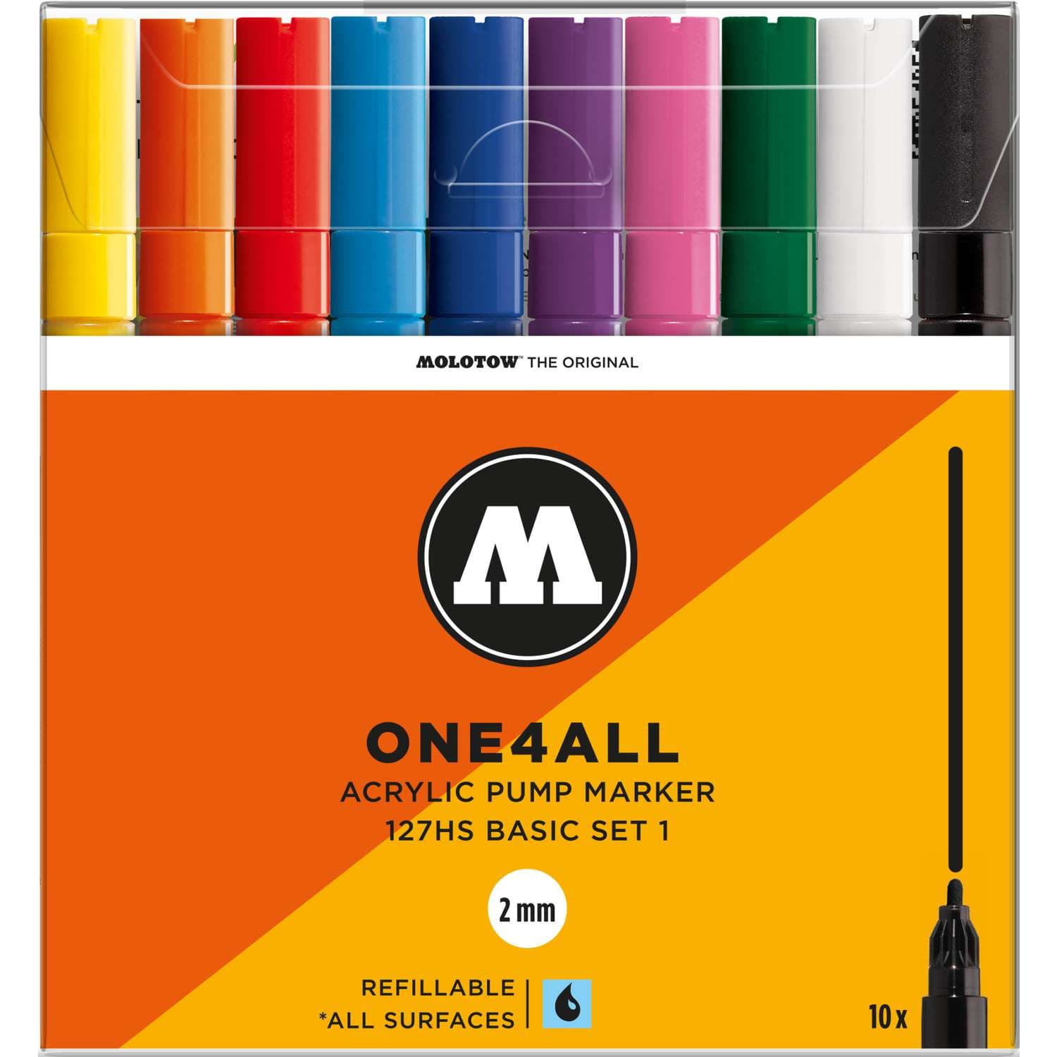 Set de rotuladores One4All 127 HS disponible en 4 versiones, 2 sets de 6 rotuladores y 2 sets de 10 rotuladores.