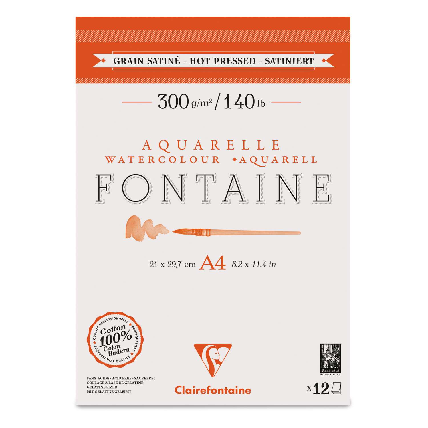 El papel acuarela Fontaine Hot Pressed es libre de todo ácido (pH neutro) para una mejor conservación del papel en el tiempo y evitar que se ponga amarillo. El papel Fontaine puede satisfacer todas sus necesidades gracias a la amplia gama de formatos de blocs encolados.