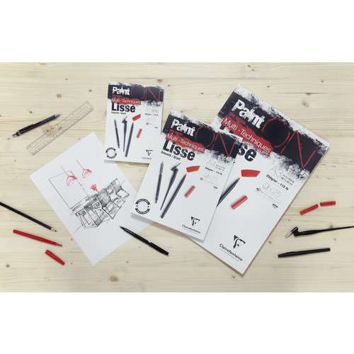 El papel Paint'On se adapta perfectamente a las técnicas secas (lápiz, grafito, rotulador) y húmedas (tinta china, gouache, acrílico). Un grano diseñado para el trabajo detallado. Excelente capacidad de absorción y posible pentimiento.