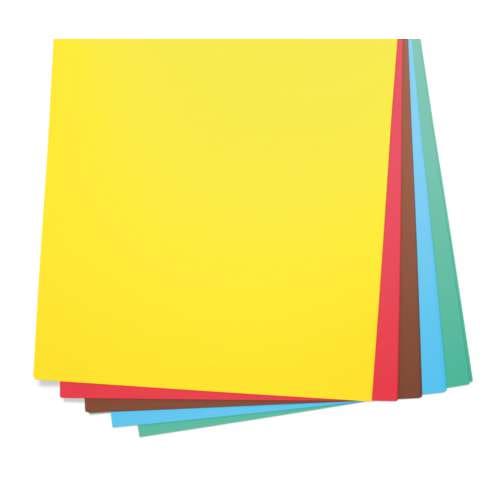 - 25 hojas, 5 hojas de cada uno de los siguientes colores: azul, amarillo sol, castaño, rojo, verde abeto.