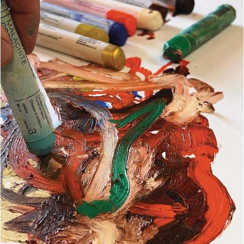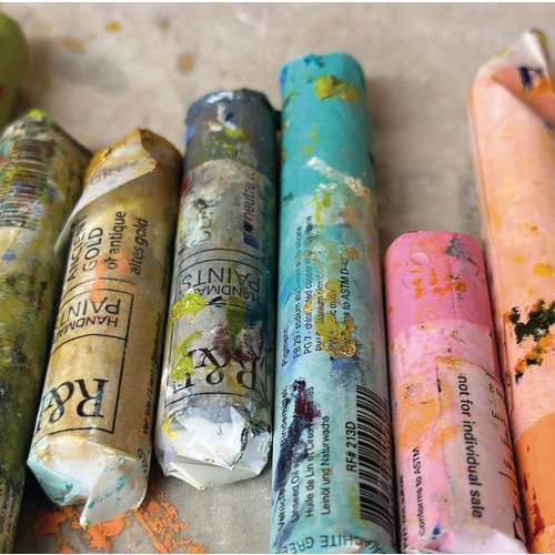 Este óleo sólido extre-fino de la marca R&F se presenta en forma de balitos suaves con una consistancia similar a la de un pintalabios. Permite al pintor dibujar o pintar fácilmente directamente en una superficie sin pinceles, paletas, tubos de pintura o solventes.