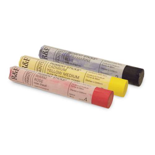 Estos balitos R&F permiten al pintor trabajar de diferentes maneras. Pueden ser utilisadas diluidas con esencia de trementina o mineral, trabajadas con medium (aceites, gels de resina, resina alcídica) o mezcladas a pinturas en tubos. Finalmente, los pigmentos sticks pueden, por supuesto ser utilizados puros para pasar de una pintura seca y manpulada con espátula o pincel cuando la consistancia vuelve suficiente untuosa. Ese metodo puede ser utilizado para mezclar los colores en la paleta o en la pintura.