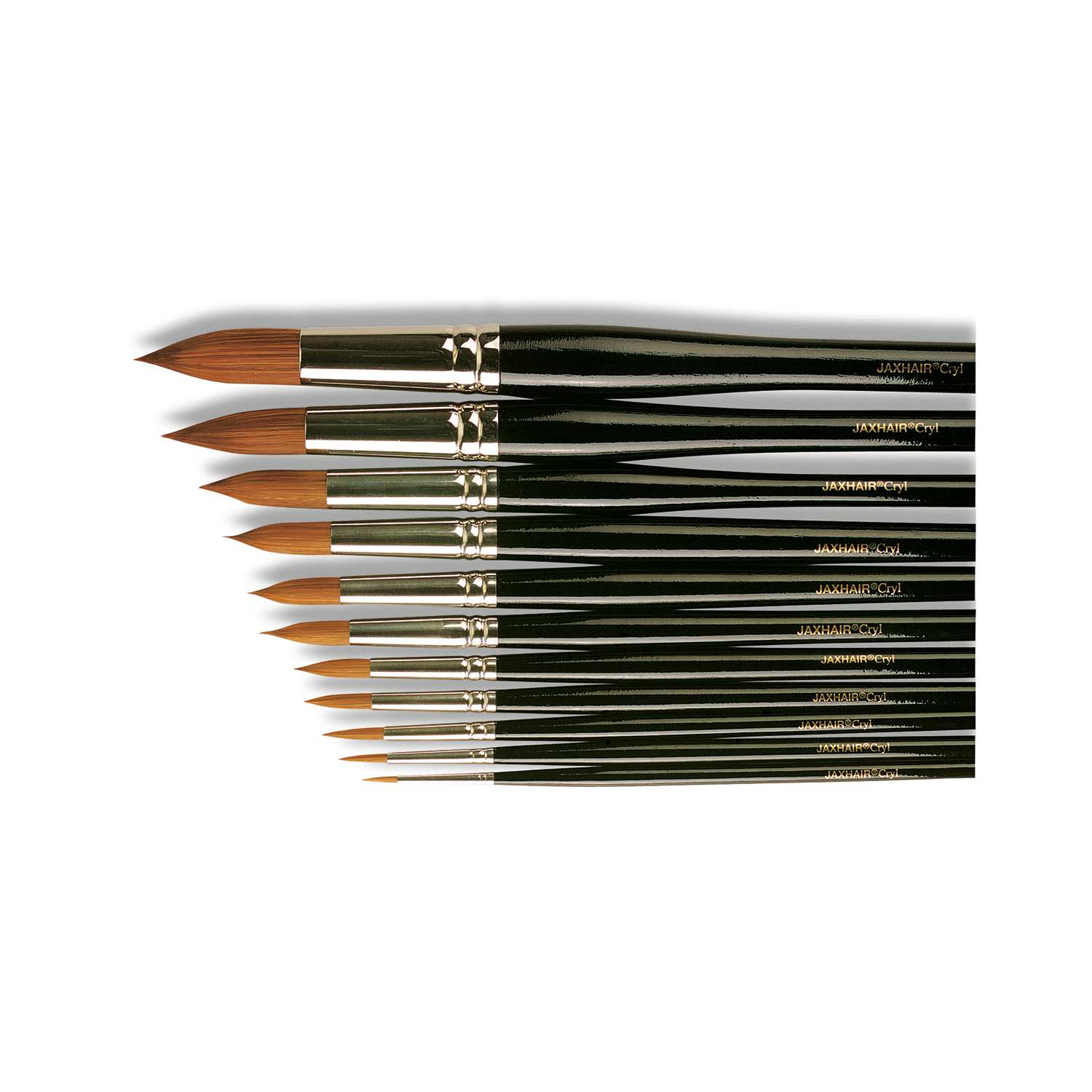Punta de fibras sintéticas. Virola plateada sin soldaduras. Mango largo negro con extremidad dorada. La gama Jax®-Hair es excepcional. Las fibras sintéticas otorgan al pincel una gran elasticidad y una durabilidad increíble. Corta y tónica, la punta es fácil de limpiar y se distingue por su excelente absorción de los colores. El pincel redondo Jax®-Hair Cryl es idóneo para pintar los detalles y acabados al óleo a acrílico. Disponible en 11 tamaños. Precio por pincel.