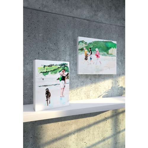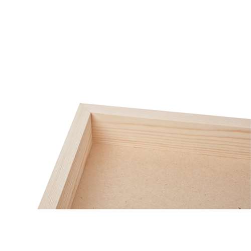 Un soporte de madera original compuesto de una plancha de MDF 5 mm en un panel de madera con un espesor de 5 cm. Estabilidad perfecta y un acabado cuidadoso para creaciones esplandidas.