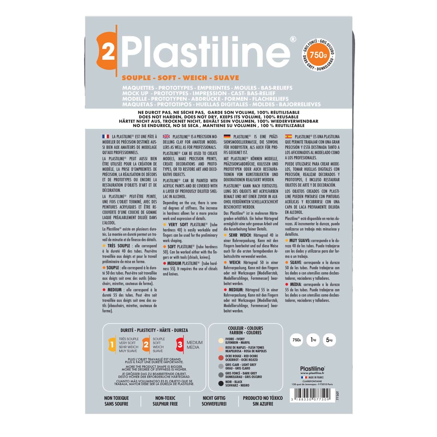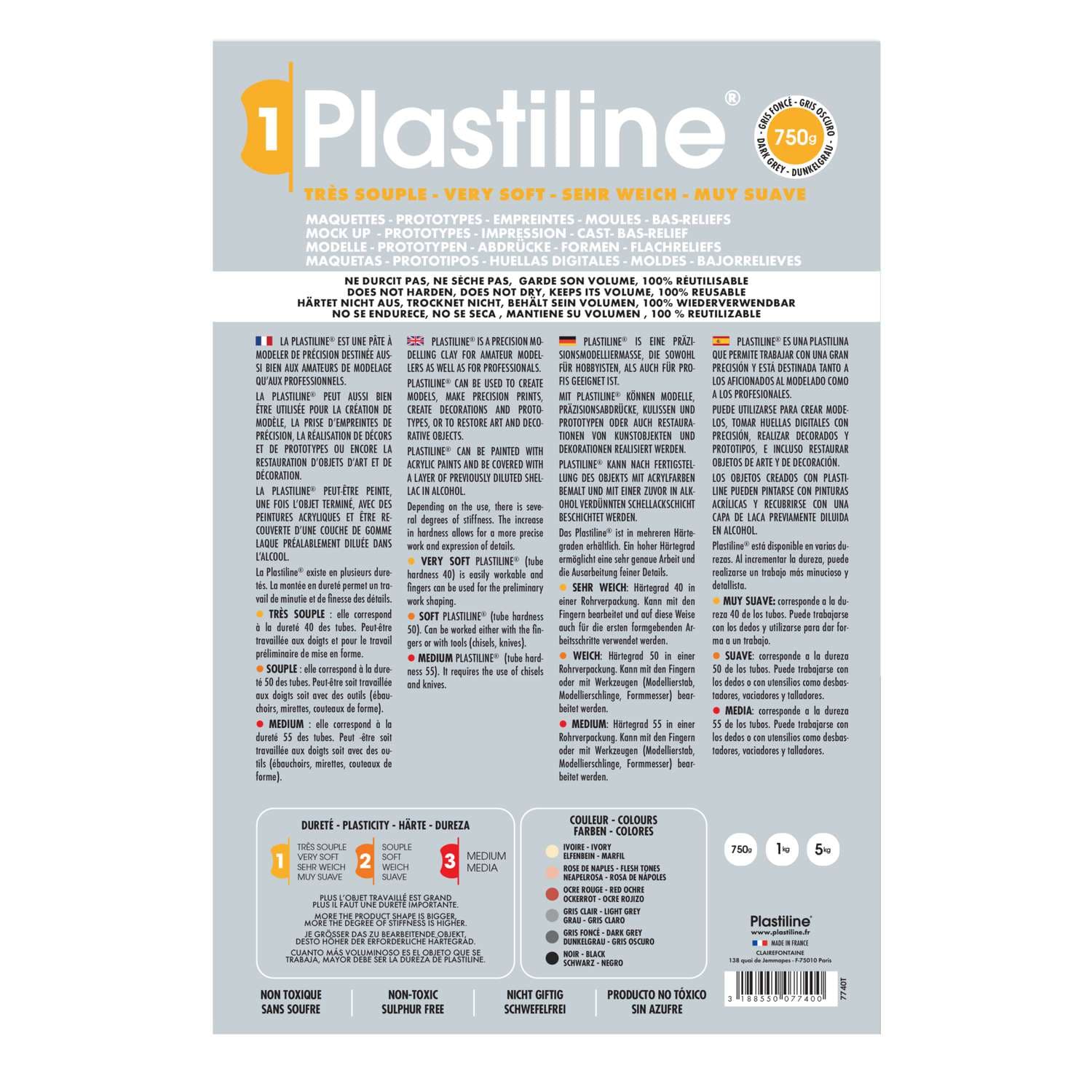 Plastilina profesional y lista para uso que conviene a numerosas realisaciones: realisaciones de huellas, maquetas, moldes, bajorrelieve, etc.