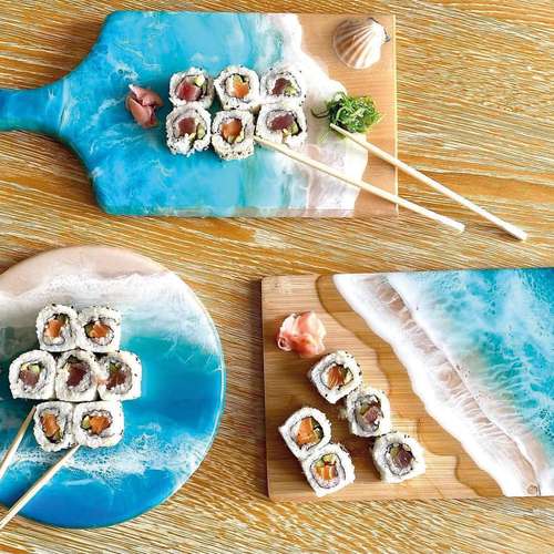 La resina EpoxyFood está adaptada para cubir sus platos y tablas para cortar.