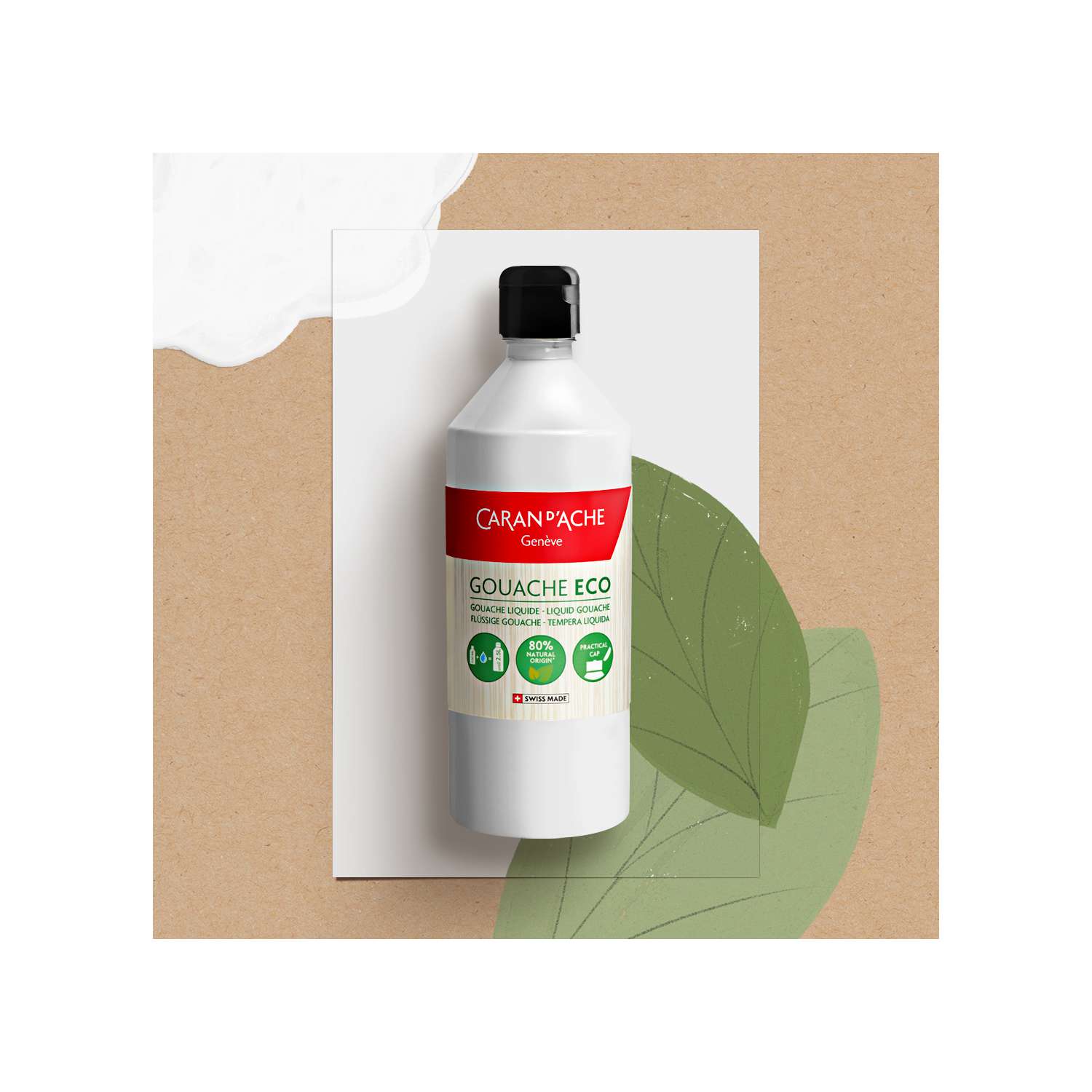 La gama Eco Gouache consta de 18 colores, incluidos 4 tonos fluorescentes. Fabricado en Suiza con un 80% de materiales naturales (excepto los colores fluorescentes).